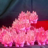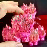 The 2024 Valentines Day Spark is 2.5" tall hand cast resin w/ a white to transparent gradation body covered with fluorescent red and pink details. A beautifully transparent multicolor Spark cast & produced by Leecifer.